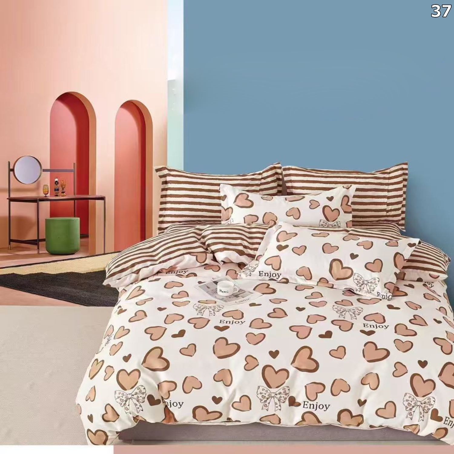 Prikladne Dimenzije: Set uključuje navlaku za poplun (140x200 cm) i dvije jastučnice (60x80 cm i 50x50 cm), pružajući sve što vam je potrebno za udoban i funkcionalan krevet.