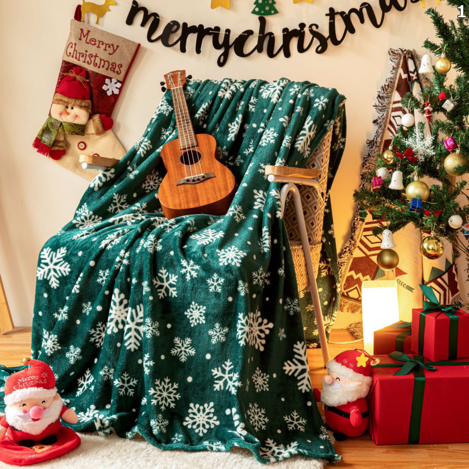 Uživajte u toplini i udobnosti tijekom hladnih zimskih dana uz našu prekrasnu božićnu deku s blagdanskim motivima. Idealna je za opuštanje na kauču, gledanje filmova ili kao dekorativan dodatak koji će unijeti božićni duh u vaš dom.